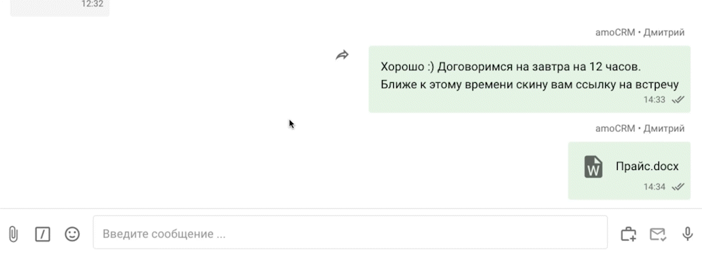 Приложение могут использовать и продавцы, и руководители. Все сообщения, отправленные из приложения, сохранятся в CRM.