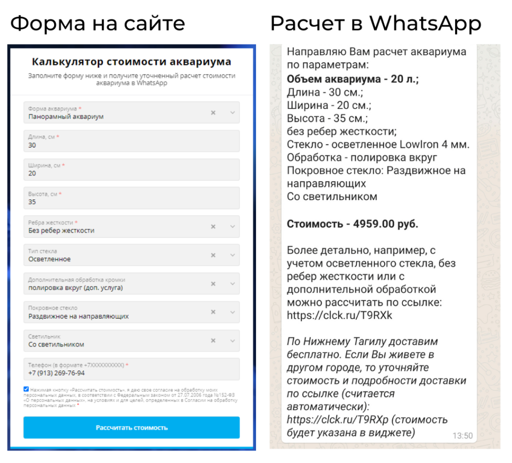 На сайтах и в соцсетях также распространён способ привлечения клиента в чат через специальную форму. Человеку нужно вписать в поле карточки свой номер телефона, и ему тут же в мессенджер придёт сообщение от вашего аккаунта в Ватсапе. Галочка под номером телефона даёт гарантию, что это уместный и легальный способ начать переписку с пользователем.