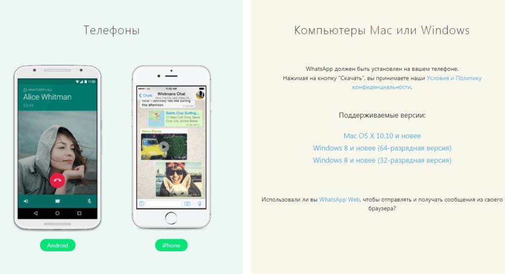 Заходим в браузер на вашем компьютере. В любом поисковике можно набрать «скачать WhatsApp Web». Чтобы использовать WhatsApp на компе, выполните действия, как на картинке ниже.
