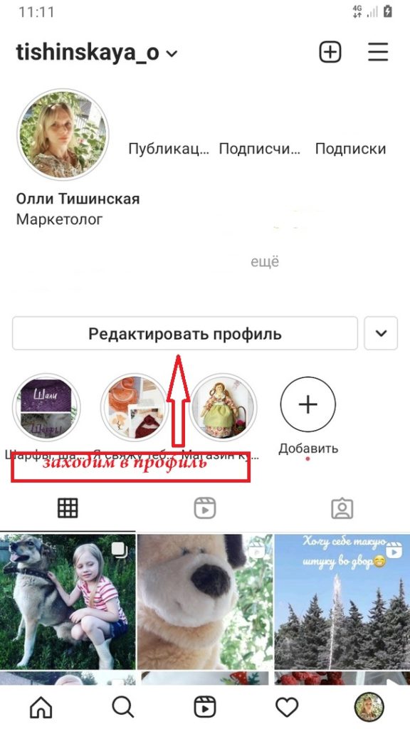 Заходите к себе на страницу в Инстаграм* и нажмите на кнопку «Редактировать профиль».