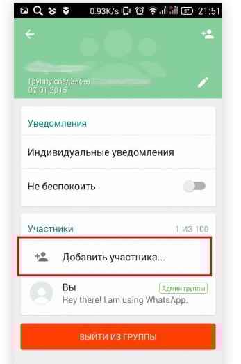 Если вам необходимо указать на свою собственную группу в профилях других приложений, сделайте следующее. Зайдите в WhatsApp. Откройте свою группу. Для этого необходимо кликнуть по вертикальному троеточию справа вверху.