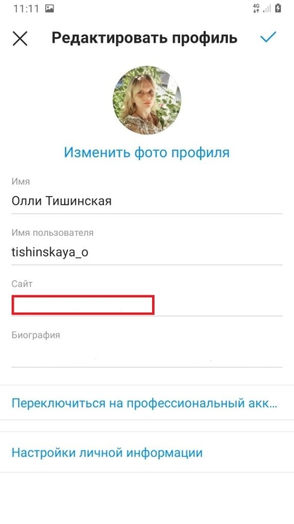 В поле, где обычно мы пишем «Веб-сайт», введите ссылку на ваш чат по образцу, который мы привели выше в статье.
