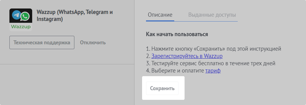 1. Перейдите в amoМаркет → вкладка «Установленные» → нажмите на приложение Wazzup.