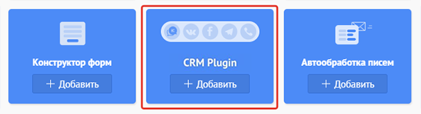 Появится окно с источниками сделок. Найдите источник «CRM Plugin» и нажмите «Добавить».