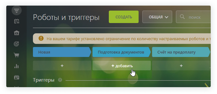 3. Выберите раздел, в который нужно добавить робота, и нажмите на «+».
