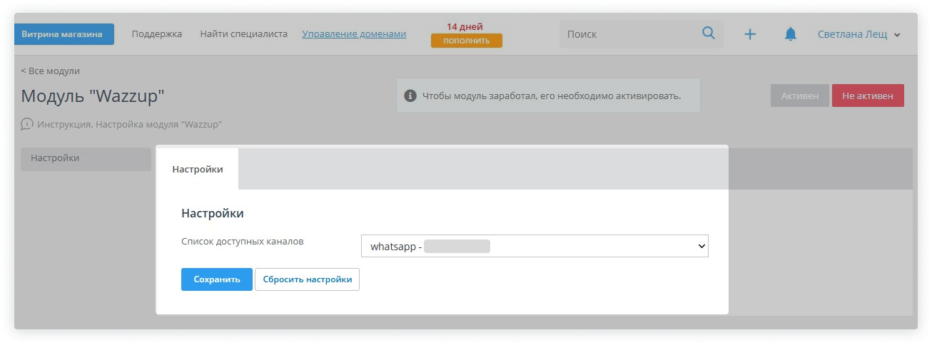 10. Вернитесь во вкладку Wazzup и обновите страницу.