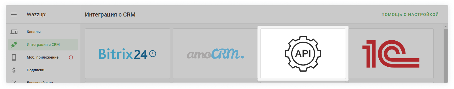 Некоторые CRM работают с Wazzup, но их нет в нашем маркетплейсе в разделе «Интеграция с CRM». В этом случае подключить приложение нужно по API: