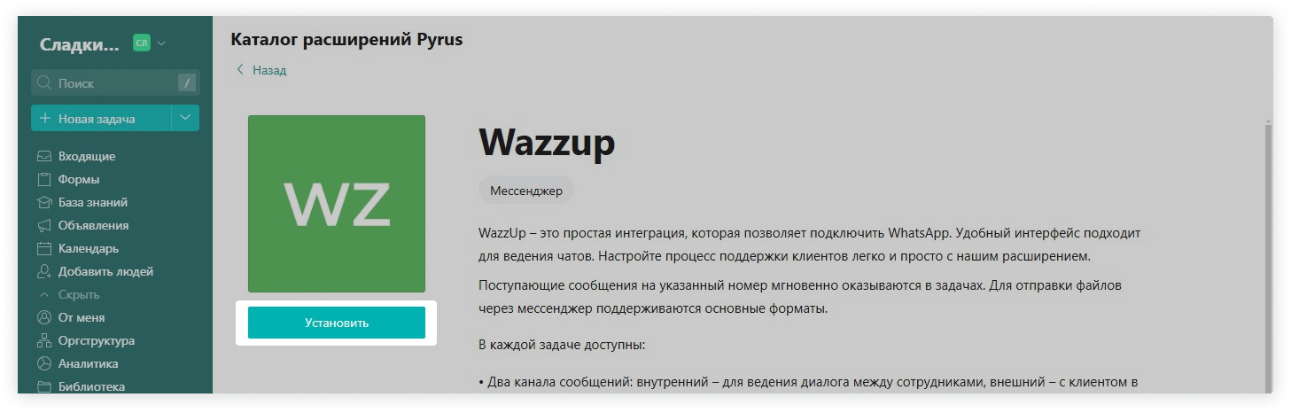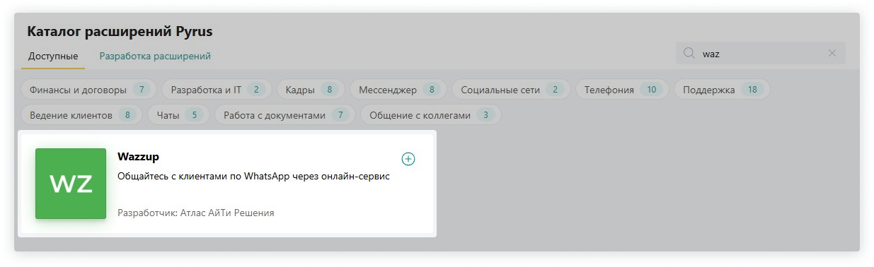 2. Найдите Wazzup → нажмите на карточку модуля.