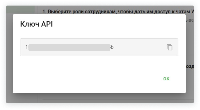 3. Скопируйте ключ, который будет показан на экране.