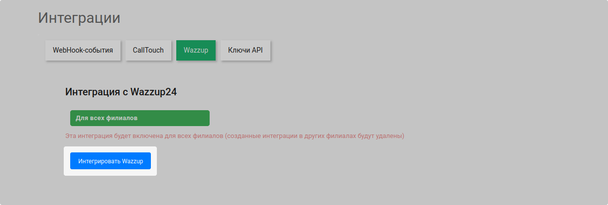 1. Перейдите в раздел Wazzup «Интеграция с CRM».