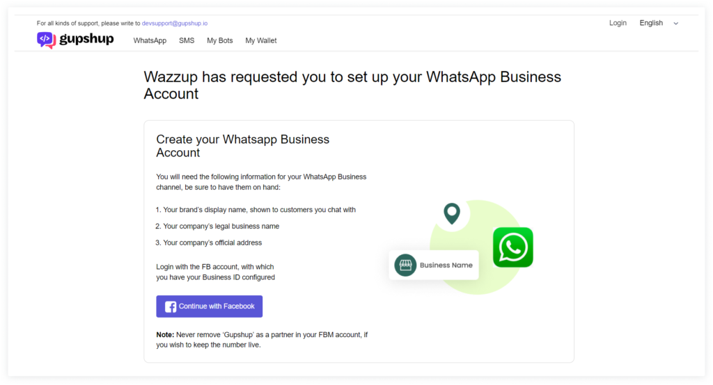 2. Зарегистрируйте номер в WABA. Пока Facebook будет проверять ваш аккаунт WhatsApp, клиенты не смогут вам писать. Это занимает обычно 10-15 минут. Поэтому, если у вас большой поток сообщений, стоит перестраховаться и выбрать второй вариант.