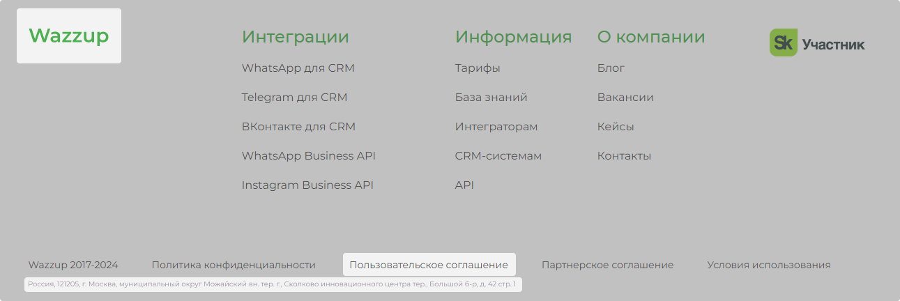 Чтобы сайт прошел проверку, в «подвале», самом нижнем блоке сайта, нужны: