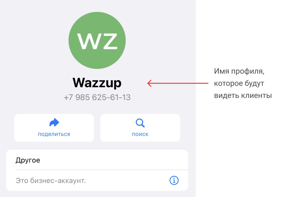 Имя пользователя клиенты не увидят — оно нужно, чтобы отличить один аккаунт от другого, если у вас их несколько.