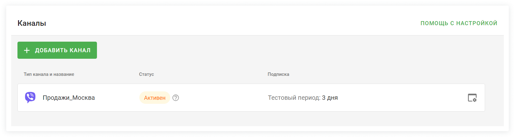 Когда вы добавили свой первый канал Viber, у вас есть три дня тестового периода. Вы можете бесплатно пользоваться сервисом и тестировать возможности без ограничений.