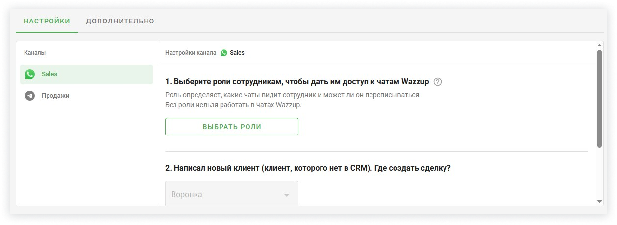 Когда вы настраиваете интеграцию с CRM, система предложит выбрать роли для сотрудников. Чтобы это сделать: