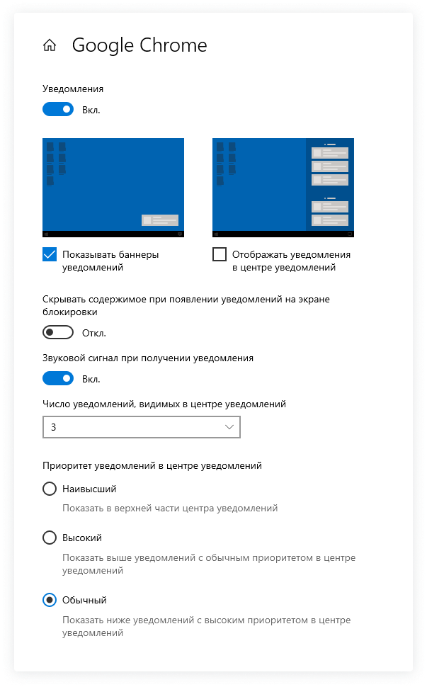 6. Нажмите на строку с Google Chrome и в открывшемся окне выберите нужные параметры отображения пуш-уведомлений.